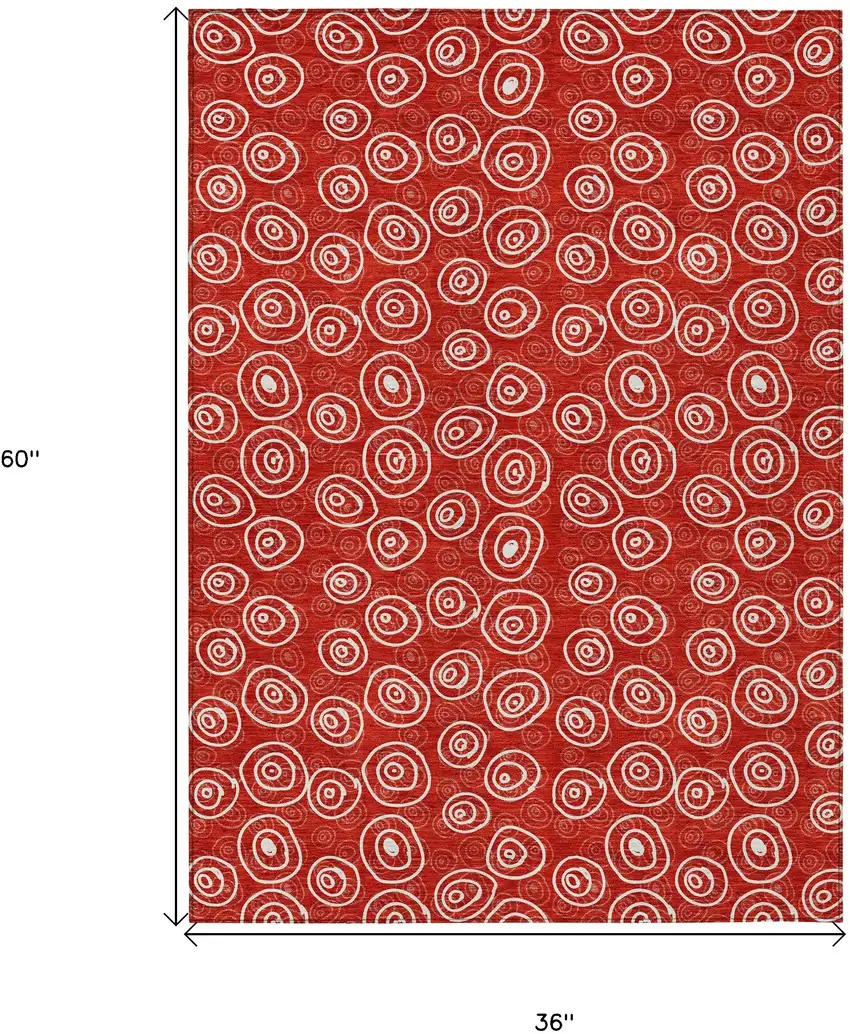 Red And Ivory Geometric Washable Indoor Outdoor Area Rug