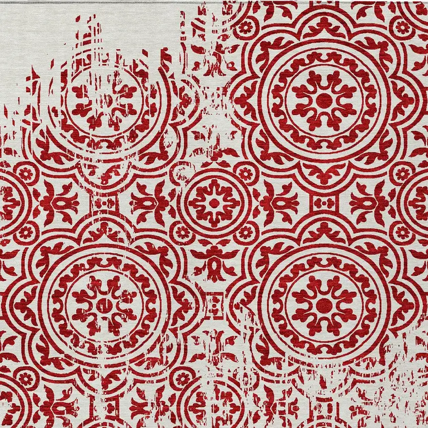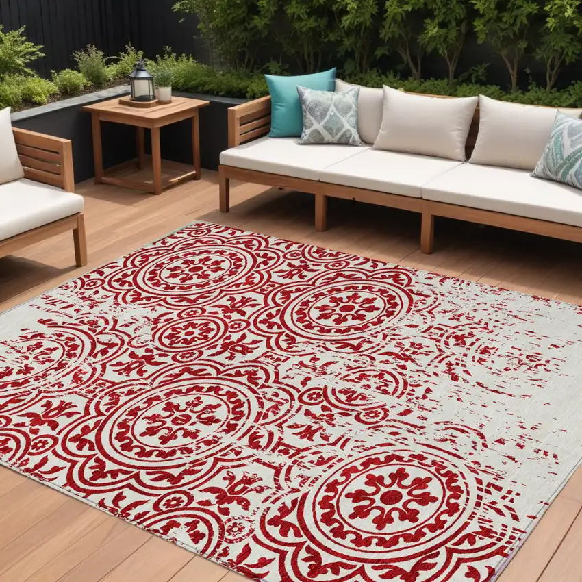 Add some artistry to your room with this 9-foot x 12-foot red and ivory medallion washable indoor outdoor area rug. This rectangle shaped rug features a medallion design that will work well both indoors or out. A classic shape marries with good looking design for your living room, hall, bedroom, porch, patio, or poolside. Ideal for outdoor spaces or high traffic areas with kids and pets, this rug is made from heavy duty polyester that is stain resistant to help repel water, dirt, and stains. Versatile in use, durable, and easy to maintain, this rug is an ideal solution to add a decorative and inviting touch to your indoor or outdoor space. 108-inch h x 144-inch w x 0.19-inch d.