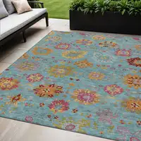 Red Beige And Navy Blue Floral Washable Indoor Outdoor Area Rug