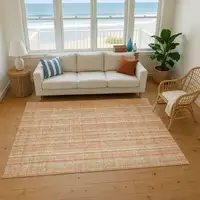 The red and beige indoor rug features a dynamic floral medallion pattern that enhances any room with its vibrant yet subtle color blend. This rug effortlessly ties together your interiors, providing a stylistic focal point.