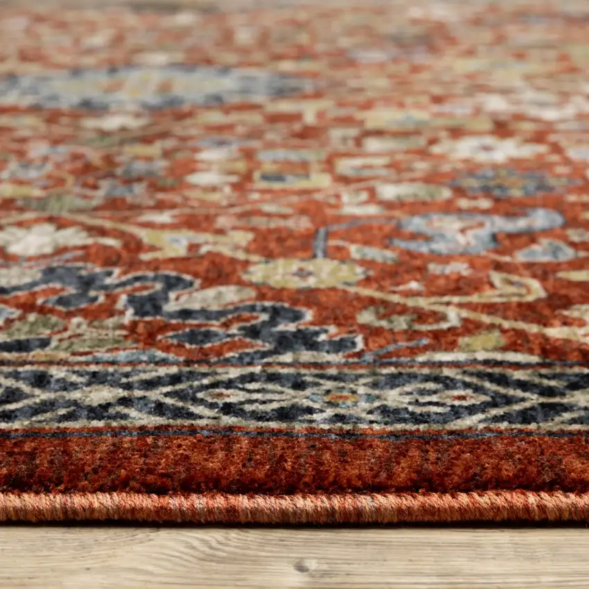 This intricately designed area rug boasts hues of red, blue, gold, and ivory for a truly Oriental aesthetic. Made to resist stains, it is as practical as it is beautiful, ensuring longevity even in high-traffic areas.