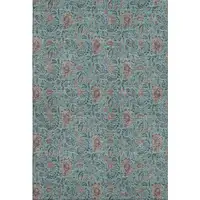 Red Gold And Blue Floral Washable Area Rug With UV Protection