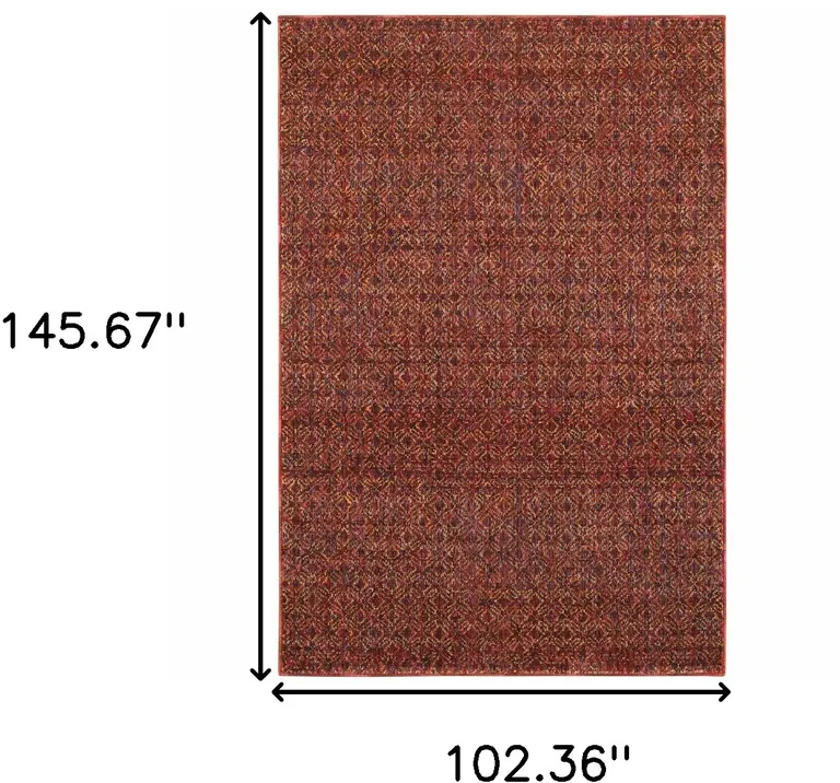 Add a splash of color to your living space with this beautiful, stain-resistant area rug. Its geometric pattern and vibrant red, gold, and blue hues make it a statement piece in any room.