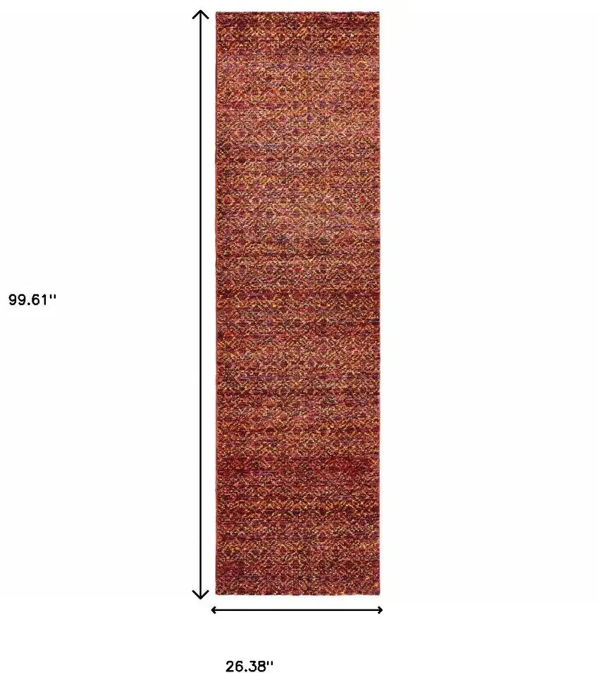 No matter if you're looking to revitalize your living room, create a welcoming entrance in your hallway, or add a touch of luxury to your bedroom, this power loom runner rug is the perfect addition to your home. Embrace style, quality, and comfort with our Red, Gold, and Blue Geometric Power Loom Runner Rug.