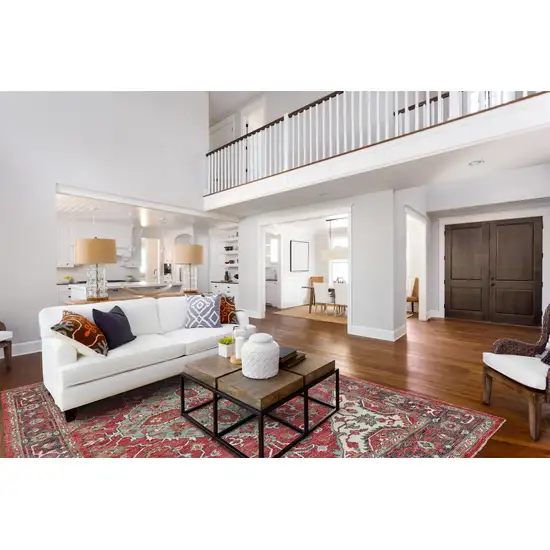Crafted by skilled artisans, this red, gray, and ivory wool floral hand-knotted area rug exemplifies the epitome of fine craftsmanship. Every intricate detail, from the hand-knotted wool fibers to the distressed finish, showcases the dedication and expertise of the artisans who lovingly created this masterpiece. Each rug is a unique work of art that tells a story through its design, making it a truly one-of-a-kind piece that sets your home apart from the rest.