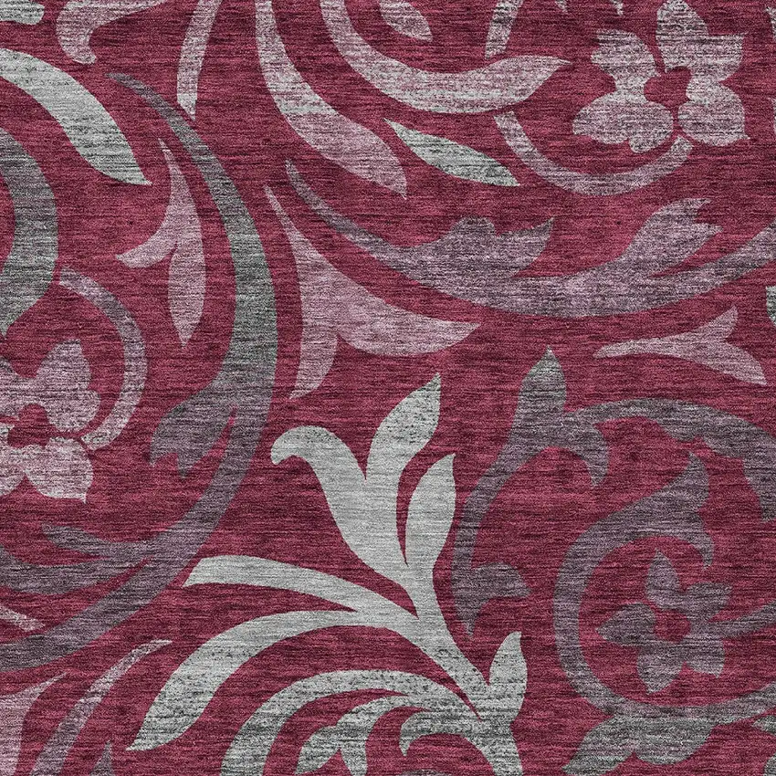 Red Gray And Silver Floral Washable Indoor Outdoor Area Rug