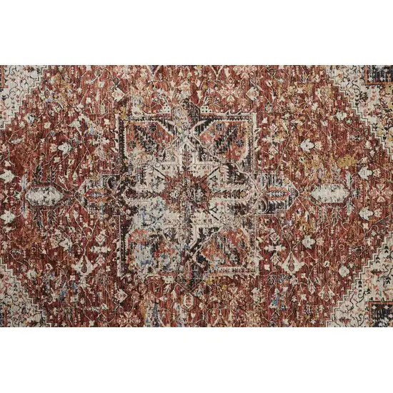 Introduce a stunning blend of red, ivory, and black tones to your space. This abstract distressed area rug will make any room feel more elegant and vibrant.