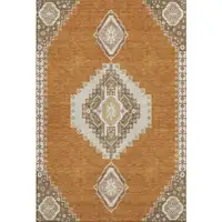 Rust And Gray Floral Washable Area Rug With UV Protection