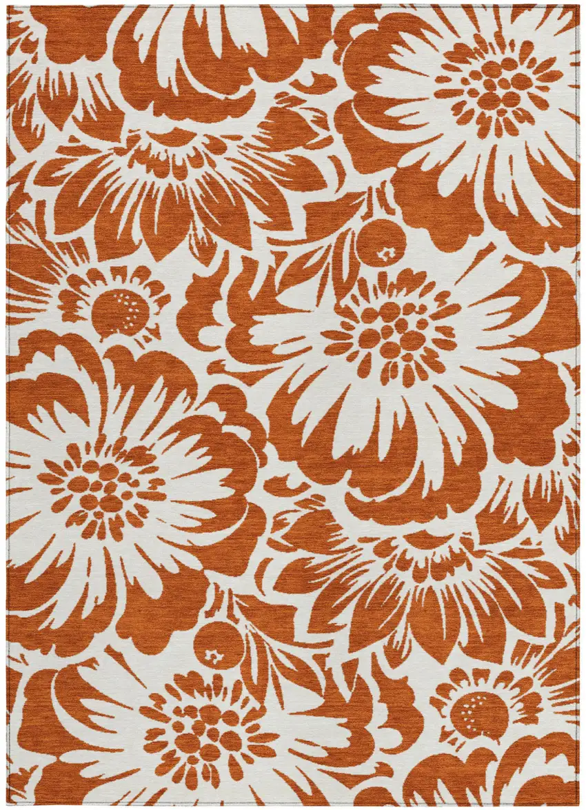 Rust and Ivory Floral Washable Non Skid Indoor Outdoor Area Rug