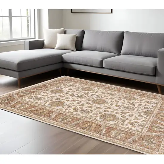 Investing in a high-quality rug means you expect it to withstand the test of time, and this rust and ivory Oriental rug does not disappoint. Crafted using a power-loom technique, it is not only visually appealing but also built to last. The stain-resistant qualities ensure that accidental spills or mishaps won't leave a permanent mark. Life happens, but this rug is ready to withstand anything you throw its way.