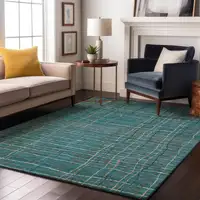 Rust And Teal Abstract Washable Area Rug With UV Protection