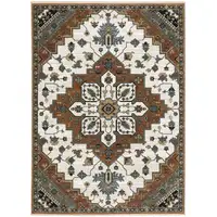 Rust Gray And Beige Oriental Area Rug With Fringe