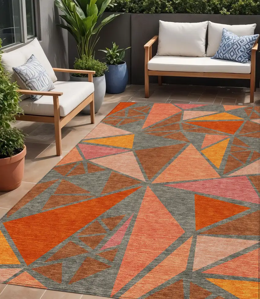 Rust Gray And Pink Geometric Washable Indoor Outdoor Area Rug
