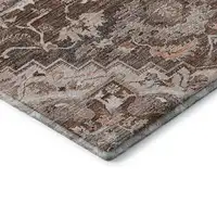Rust Ivory And Beige Floral Medallion Washable Area Rug With UV Protection