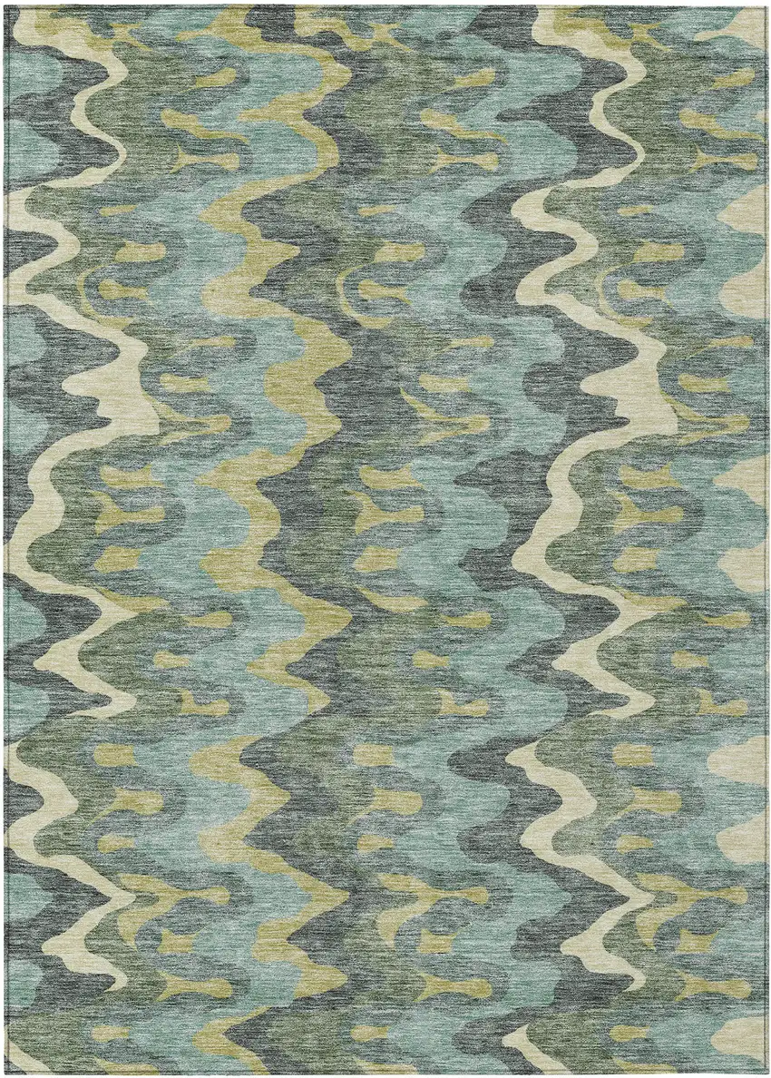 Sage And Artichoke Green Abstract Washable Indoor Outdoor Area Rug