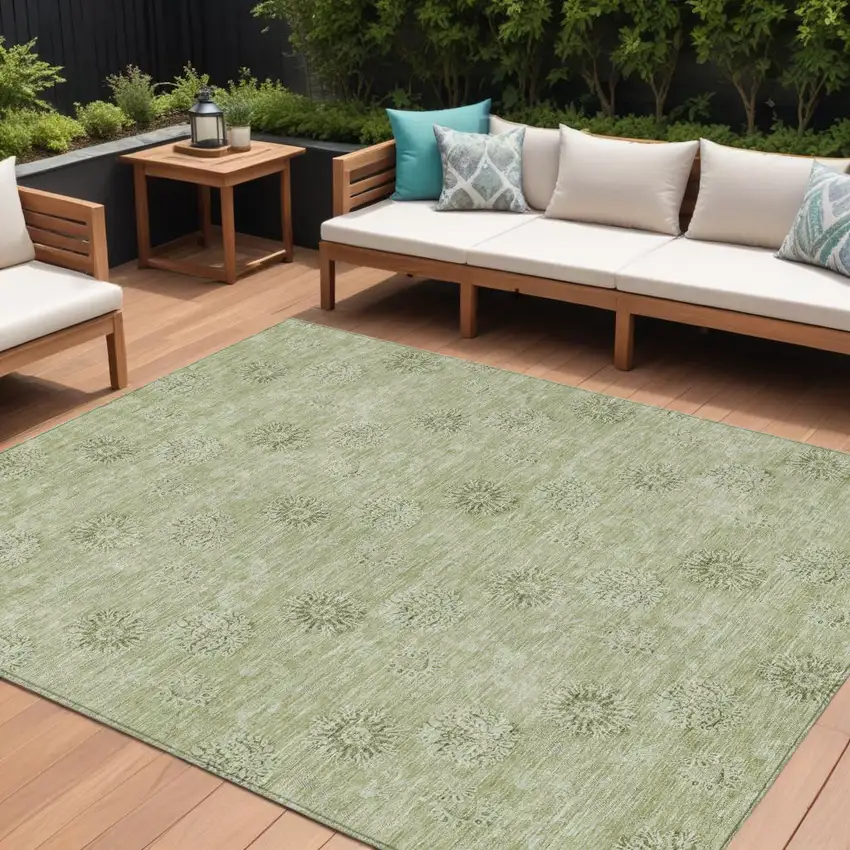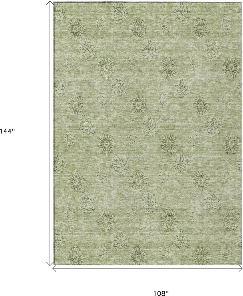 Add some artistry to your room with this 9-foot x 12-foot sage and artichoke green floral washable indoor outdoor area rug. This rectangle shaped rug features a floral design that will work well both indoors or out. A classic shape marries with good looking design for your living room, hall, bedroom, porch, patio, or poolside. Ideal for outdoor spaces or high traffic areas with kids and pets, this rug is made from heavy duty polyester that is stain resistant to help repel water, dirt, and stains. Makes a great way to dress up your patio, porch, or poolside, but also works well as a durable and easy to maintain option in the kitchen, family room, or mudroom. 108-inch h x 144-inch w x 0.19-inch d.