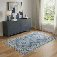 Sage And Ivory Abstract Washable Area Rug With UV Protection