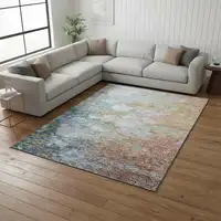 Sage And Teal Abstract Washable Area Rug With UV Protection