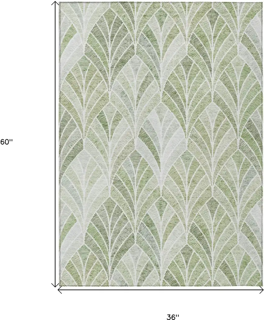 Add some artistry to your room with this 3-foot x 5-foot sage artichoke green and mint green geometric washable indoor outdoor area rug. This rectangle shaped rug features a geometric design that will work well both indoors or out. A classic shape marries with good looking design for your living room, hall, bedroom, porch, patio, or poolside. Ideal for outdoor spaces or high traffic areas with kids and pets, this rug is made from heavy duty polyester that is stain resistant to help repel water, dirt, and stains. Makes a great way to dress up your patio, porch, or poolside, but also works well as a durable and easy to maintain option in the kitchen, family room, or mudroom. 36-inch h x 60-inch w x 0.19-inch d.