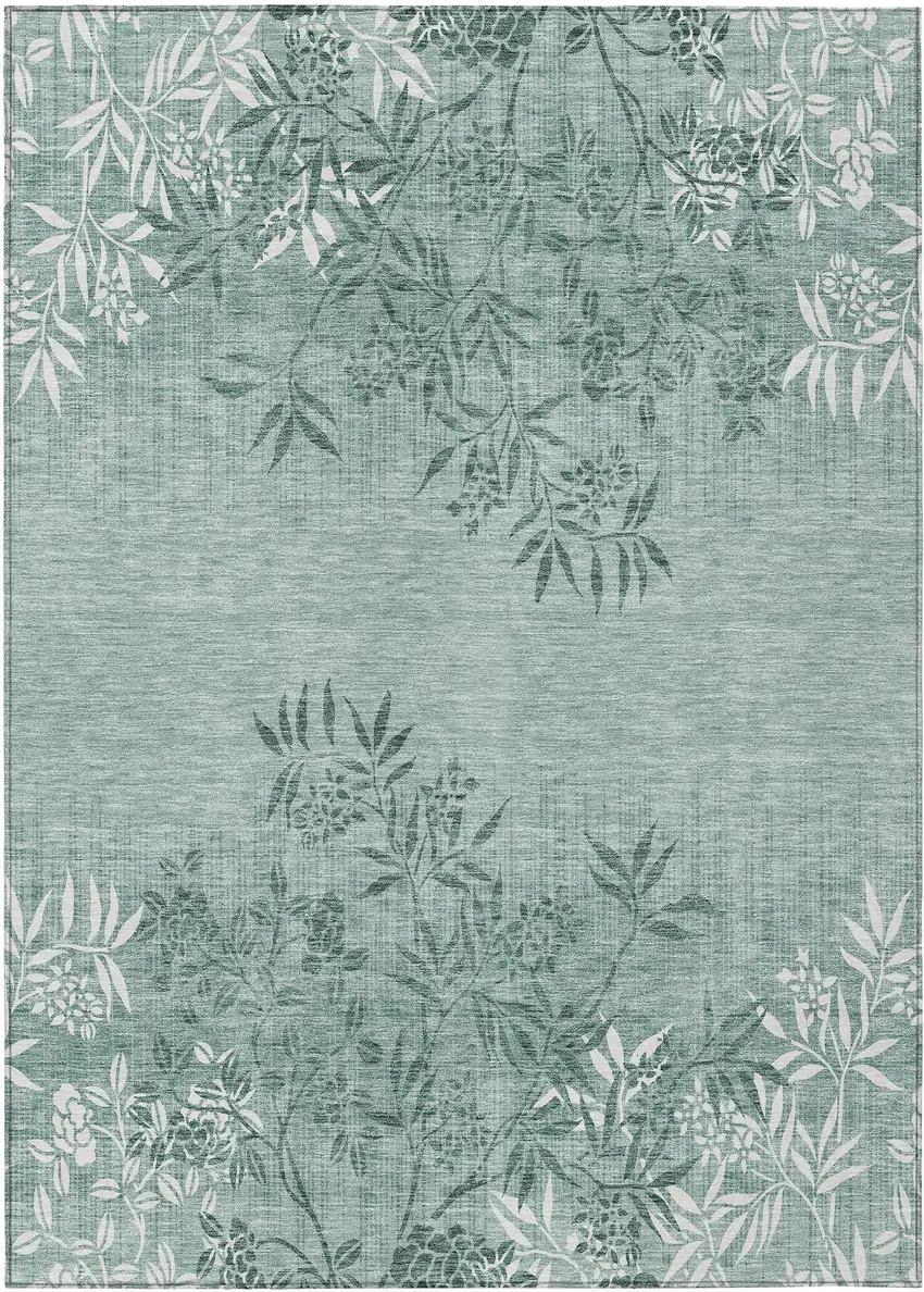 Add great coloration and comfortable texture to your space with this 5-foot x 8-foot sage fern green and ivory floral washable indoor outdoor area rug. This rectangle shaped rug features a floral design that will work well both indoors or out. A classic shape marries with good looking design for your living room, hall, bedroom, porch, patio, or poolside. Ideal for outdoor spaces or high traffic areas with kids and pets, this rug is made from heavy duty polyester that is stain resistant to help repel water, dirt, and stains. Makes a great way to dress up your patio, porch, or poolside, but also works well as a durable and easy to maintain option in the kitchen, family room, or mudroom. 60-inch h x 90-inch w x 0.19-inch d.
