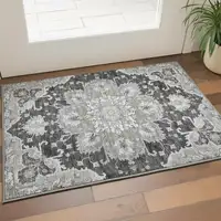 Sage Gray And Ivory Abstract Washable Area Rug With UV Protection
