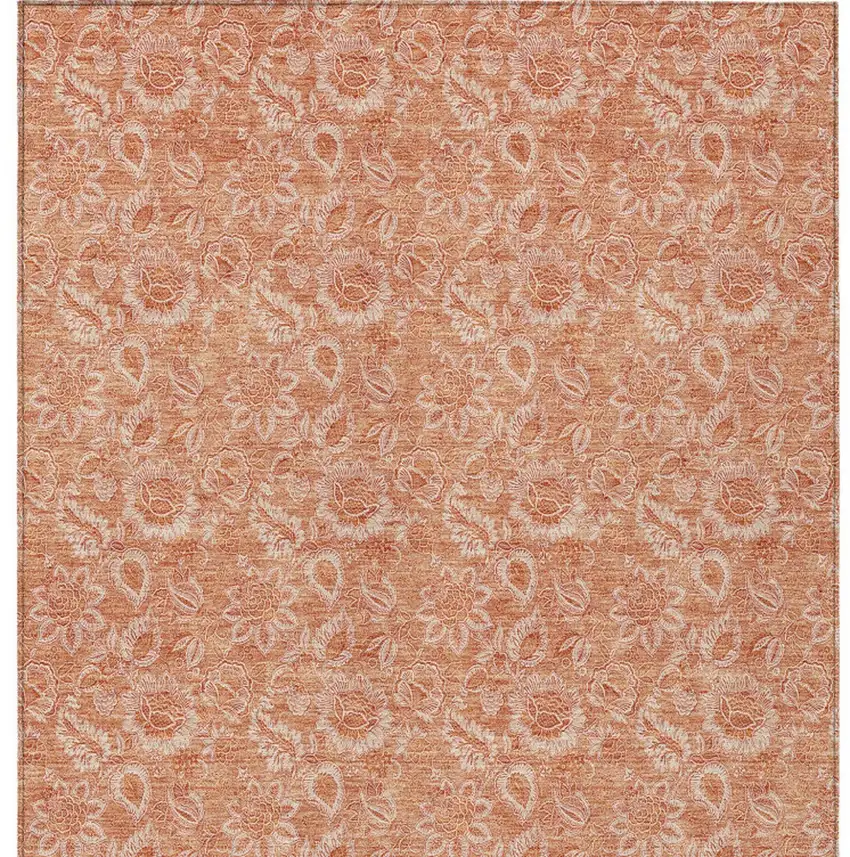 Set an inviting tone in your space with this 9-foot x 12-foot salmon and copper floral washable indoor outdoor area rug. This rectangle shaped rug features a floral design that will work well both indoors or out. A classic shape marries with good looking design for your living room, hall, bedroom, porch, patio, or poolside. Ideal for outdoor spaces or high traffic areas with kids and pets, this rug is made from heavy duty polyester that is stain resistant to help repel water, dirt, and stains. Makes a great way to dress up your patio, porch, or poolside, but also works well as a durable and easy to maintain option in the kitchen, family room, or mudroom. 108-inch h x 144-inch w x 0.19-inch d.