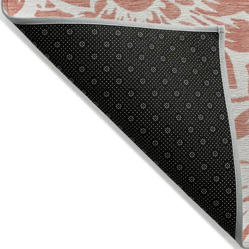 Salmon and Ivory Floral Washable Non Skid Indoor Outdoor Area Rug