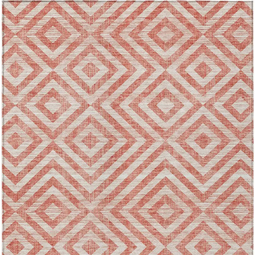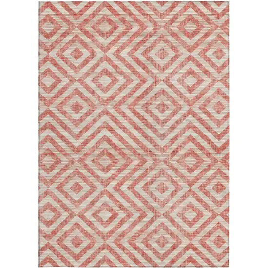 Salmon And Ivory Geometric Washable Indoor Outdoor Area Rug