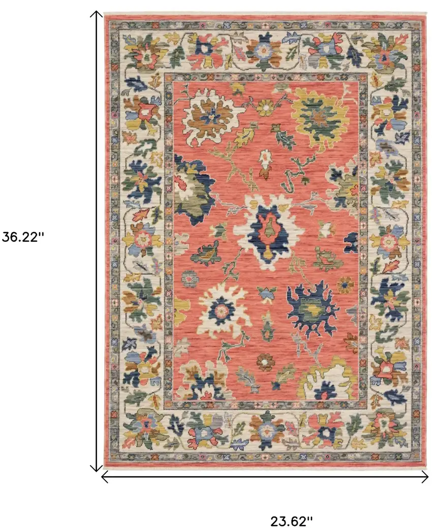 Salmon Blue And Yellow Oriental Area Rug With Fringe