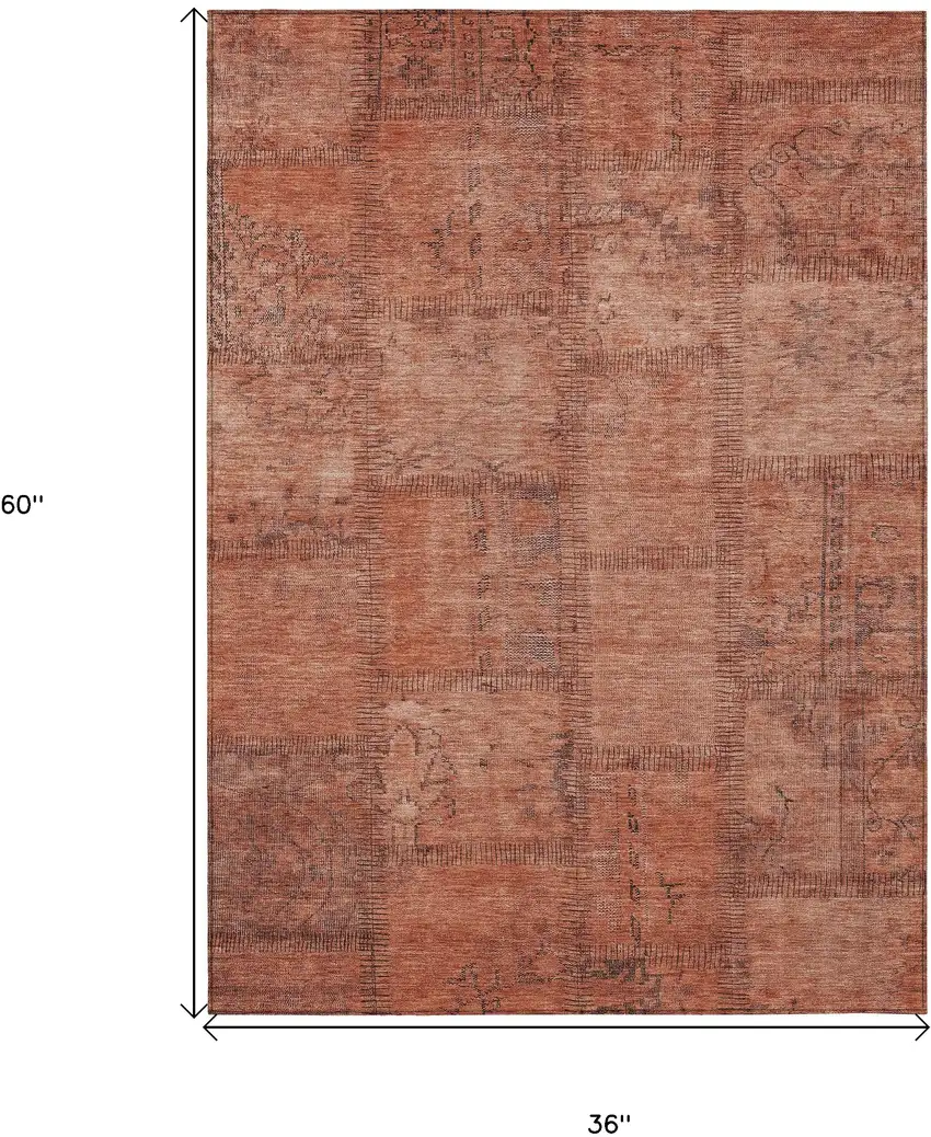 Salmon Copper And Gray Patchwork Washable Indoor Outdoor Area Rug