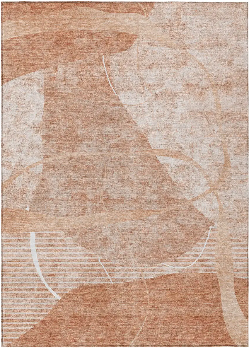 Add great coloration and comfortable texture to your space with this 8-foot x 10-foot salmon copper and ivory abstract washable indoor outdoor area rug. This rectangle shaped rug features a abstract design that will work well both indoors or out. A classic shape marries with good looking design for your living room, hall, bedroom, porch, patio, or poolside. Ideal for outdoor spaces or high traffic areas with kids and pets, this rug is made from heavy duty polyester that is stain resistant to help repel water, dirt, and stains. Versatile in use, durable, and easy to maintain, this rug is an ideal solution to add a decorative and inviting touch to your indoor or outdoor space. 96-inch h x 120-inch w x 0.19-inch d.