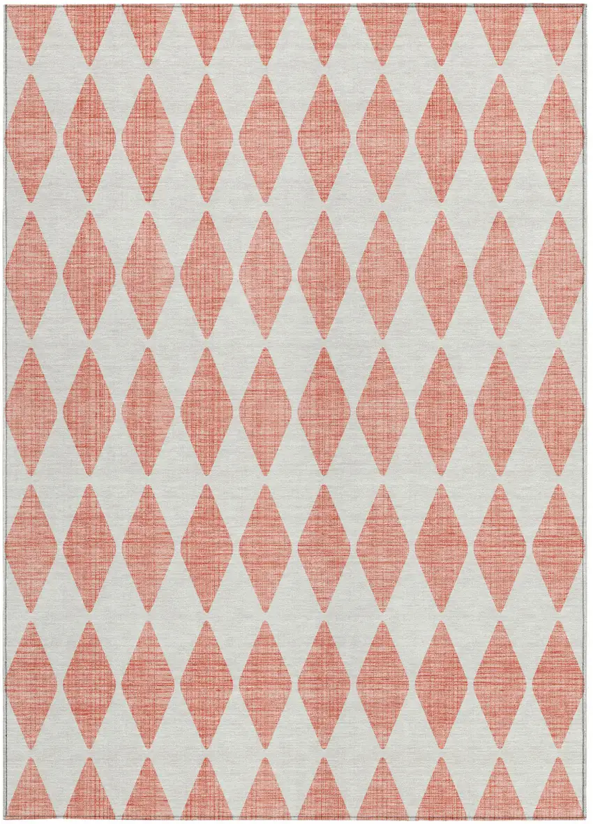 Set an inviting tone in your space with this 9-foot x 12-foot salmon geometric washable indoor outdoor area rug. This rectangle shaped rug features a geometric design that will work well both indoors or out. A classic shape marries with good looking design for your living room, hall, bedroom, porch, patio, or poolside. Ideal for outdoor spaces or high traffic areas with kids and pets, this rug is made from heavy duty polyester that is stain resistant to help repel water, dirt, and stains. Versatile in use, durable, and easy to maintain, this rug is an ideal solution to add a decorative and inviting touch to your indoor or outdoor space. 108-inch h x 144-inch w x 0.19-inch d.