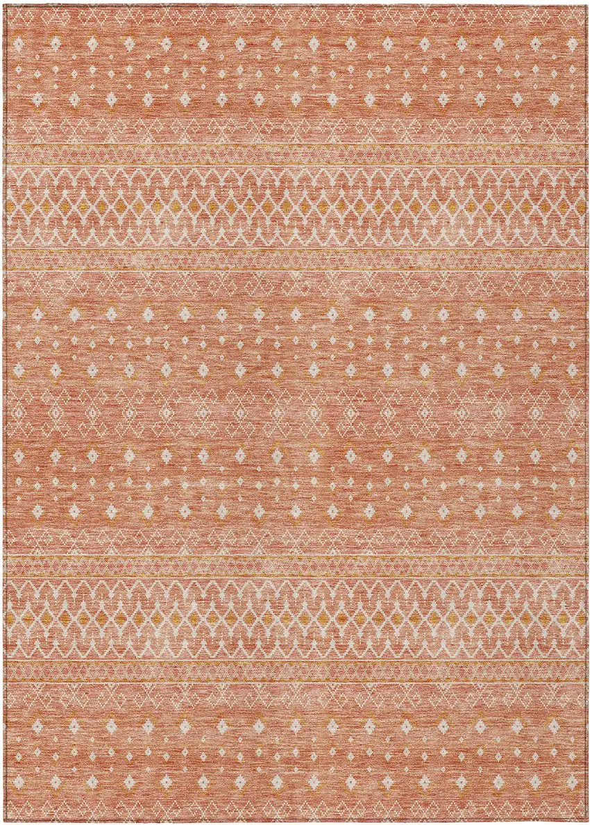 Salmon Gold And Ivory Tribal Washable Indoor Outdoor Area Rug