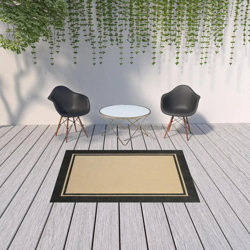 Order yours today and experience the transformative power of the Sand and Black Border Indoor/Outdoor Area Rug.