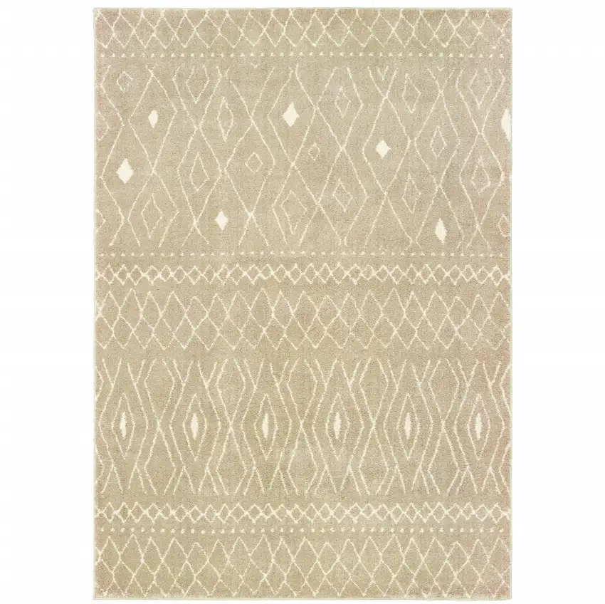 Sand And Ivory Geometric Power Loom Stain Resistant Area Rug