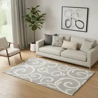 Silver And Gray Floral Washable Area Rug With UV Protection