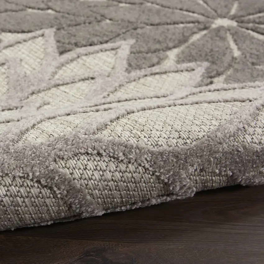 Whether you use it as a focal point in your living room or as a functional accent piece on your patio, this rug adds a touch of elegance and sophistication to any setting. Its silver and gray color scheme effortlessly complements a variety of furniture styles and colors, making it a versatile choice that seamlessly merges with your existing décor. Let its captivating design and superior quality enhance the ambiance of your space.
