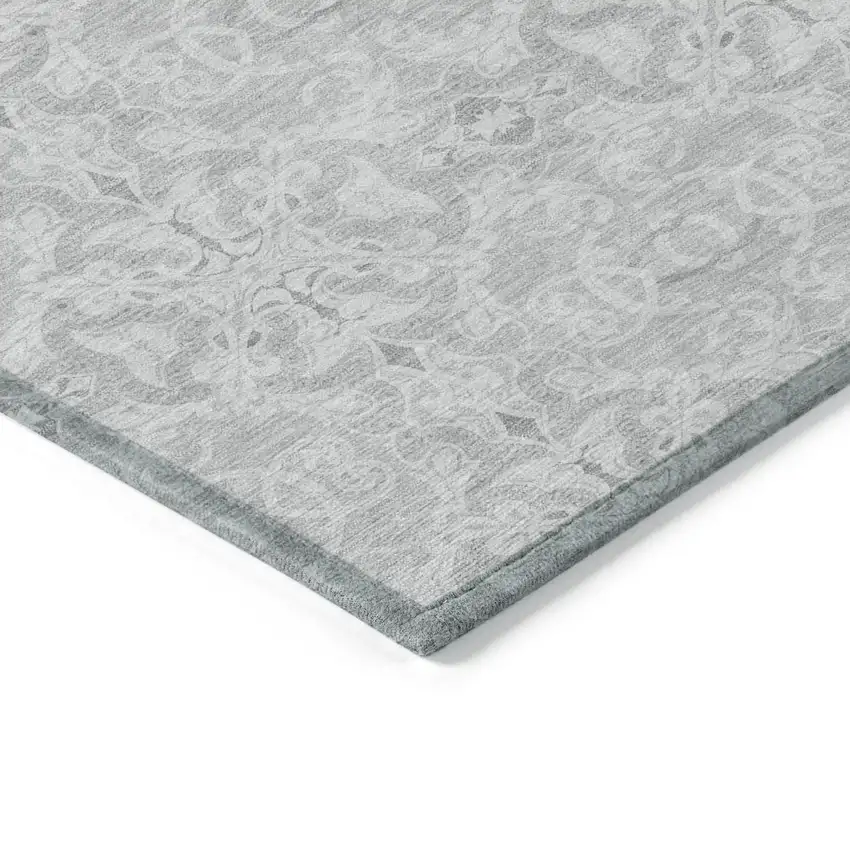 Silver And Gray Medallion Washable Indoor Outdoor Area Rug