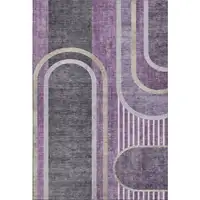 Silver And Ivory Geometric Washable Area Rug With UV Protection