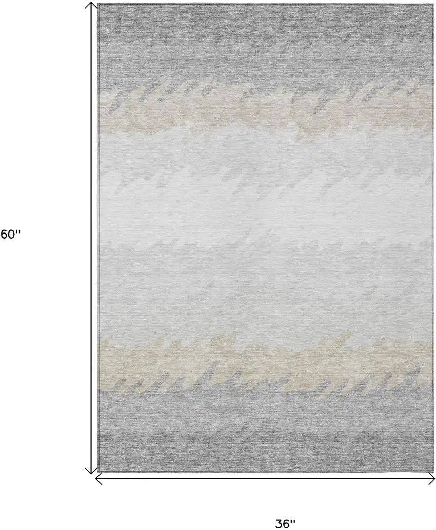 This 3-foot x 5-foot silver gray and beige striped washable indoor outdoor area rug, is a great way to add warmth to a room. This rectangle shaped rug features a striped design that will work well both indoors or out. A classic shape marries with good looking design for your living room, hall, bedroom, porch, patio, or poolside. Ideal for outdoor spaces or high traffic areas with kids and pets, this rug is made from heavy duty polyester that is stain resistant to help repel water, dirt, and stains. Makes a great way to dress up your patio, porch, or poolside, but also works well as a durable and easy to maintain option in the kitchen, family room, or mudroom. 36-inch h x 60-inch w x 0.19-inch d.