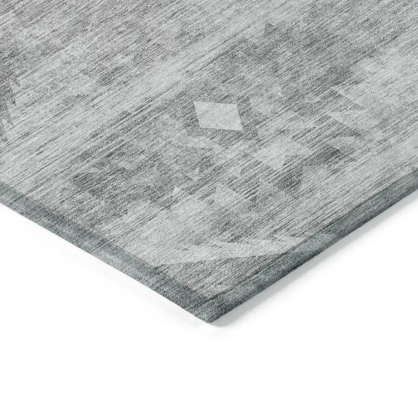 Silver Gray And Charcoal Southwestern Washable Indoor Outdoor Area Rug
