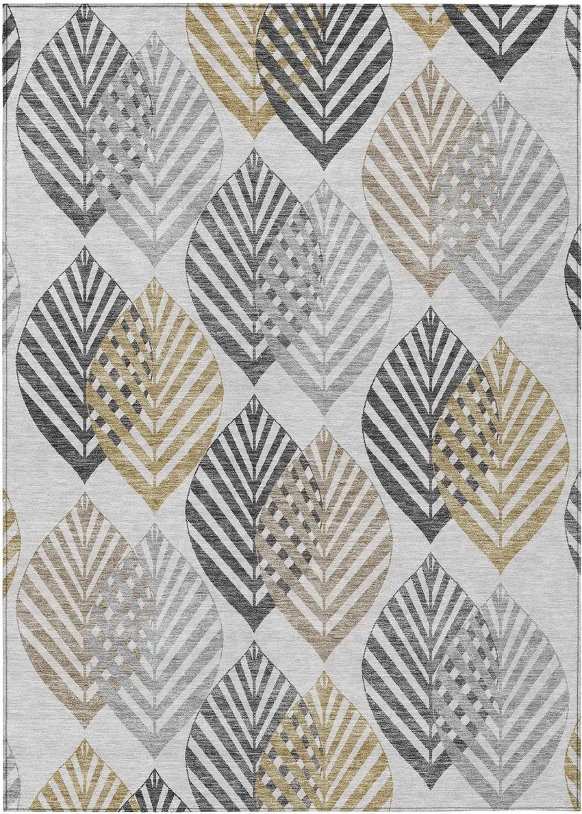 This 5-foot x 8-foot silver gray and gold floral washable indoor outdoor area rug, is a great way to add warmth to a room. This rectangle shaped rug features a floral design that will work well both indoors or out. A classic shape marries with good looking design for your living room, hall, bedroom, porch, patio, or poolside. Ideal for outdoor spaces or high traffic areas with kids and pets, this rug is made from heavy duty polyester that is stain resistant to help repel water, dirt, and stains. Versatile in use, durable, and easy to maintain, this rug is an ideal solution to add a decorative and inviting touch to your indoor or outdoor space. 60-inch h x 90-inch w x 0.19-inch d.