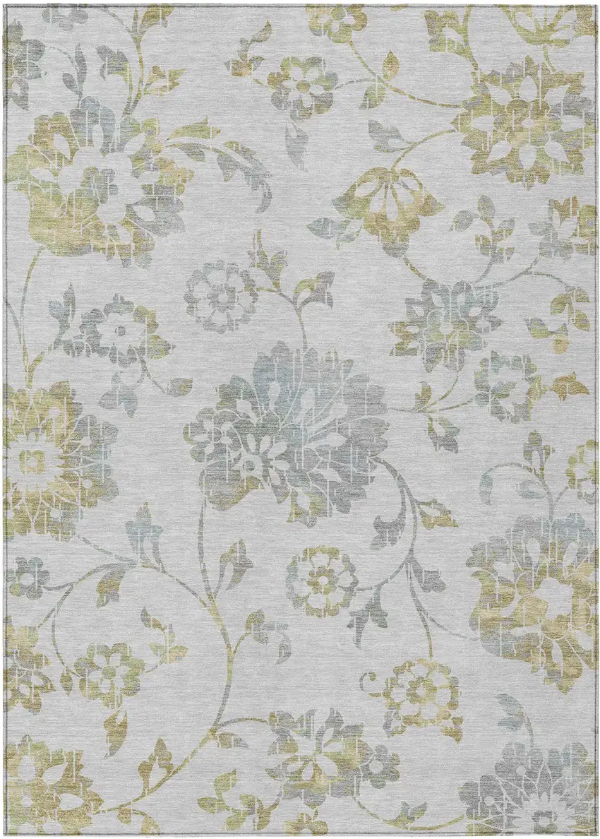 Set an inviting tone in your space with this 10-foot x 14-foot silver gray and gold floral washable indoor outdoor area rug. This rectangle shaped rug features a floral design that will work well both indoors or out. A classic shape marries with good looking design for your living room, hall, bedroom, porch, patio, or poolside. Ideal for outdoor spaces or high traffic areas with kids and pets, this rug is made from heavy duty polyester that is stain resistant to help repel water, dirt, and stains. Makes a great way to dress up your patio, porch, or poolside, but also works well as a durable and easy to maintain option in the kitchen, family room, or mudroom. 120-inch h x 168-inch w x 0.19-inch d.