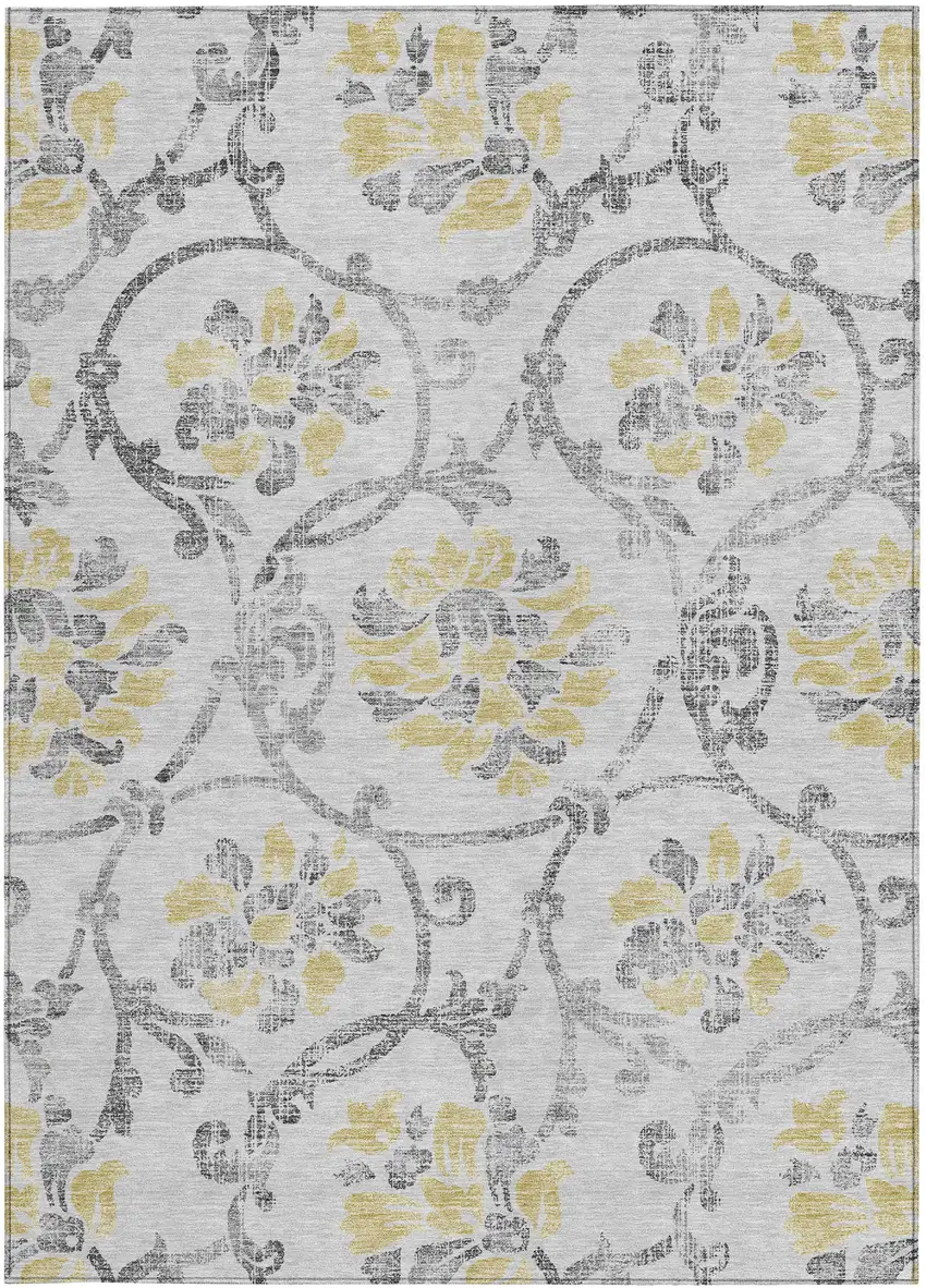 Add some artistry to your room with this 9-foot x 12-foot silver gray and gold floral washable indoor outdoor area rug. This rectangle shaped rug features a floral design that will work well both indoors or out. A classic shape marries with good looking design for your living room, hall, bedroom, porch, patio, or poolside. Ideal for outdoor spaces or high traffic areas with kids and pets, this rug is made from heavy duty polyester that is stain resistant to help repel water, dirt, and stains. Versatile in use, durable, and easy to maintain, this rug is an ideal solution to add a decorative and inviting touch to your indoor or outdoor space. 108-inch h x 144-inch w x 0.19-inch d.