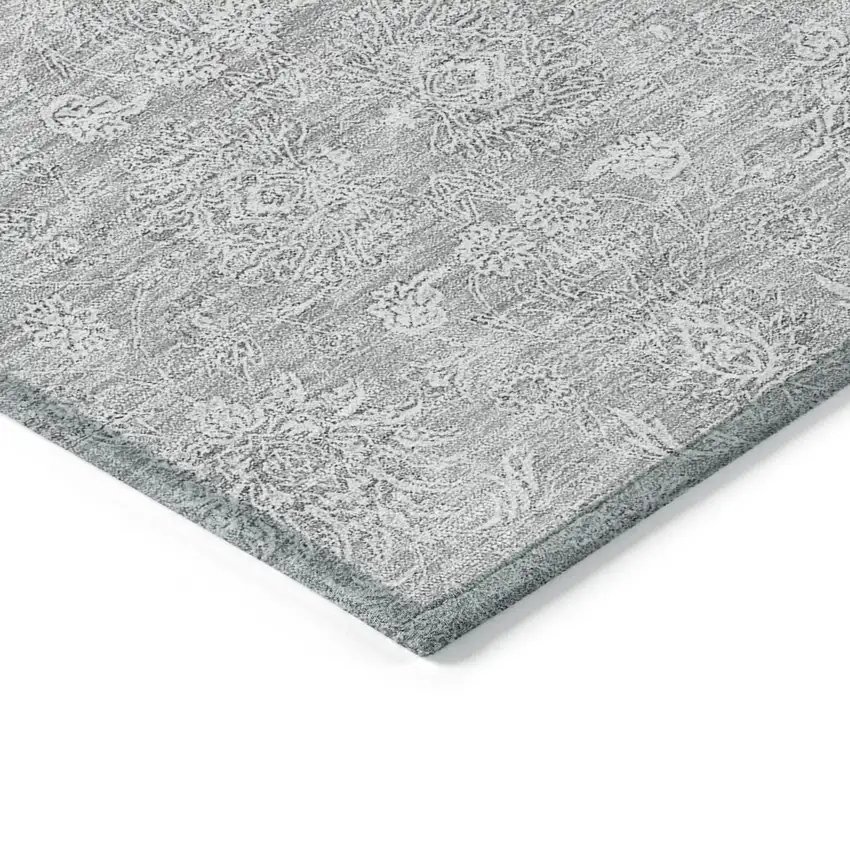 Silver Gray And Ivory Floral Washable Indoor Outdoor Area Rug