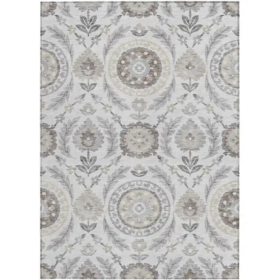 Silver Gray And Taupe Floral Washable Indoor Outdoor Area Rug