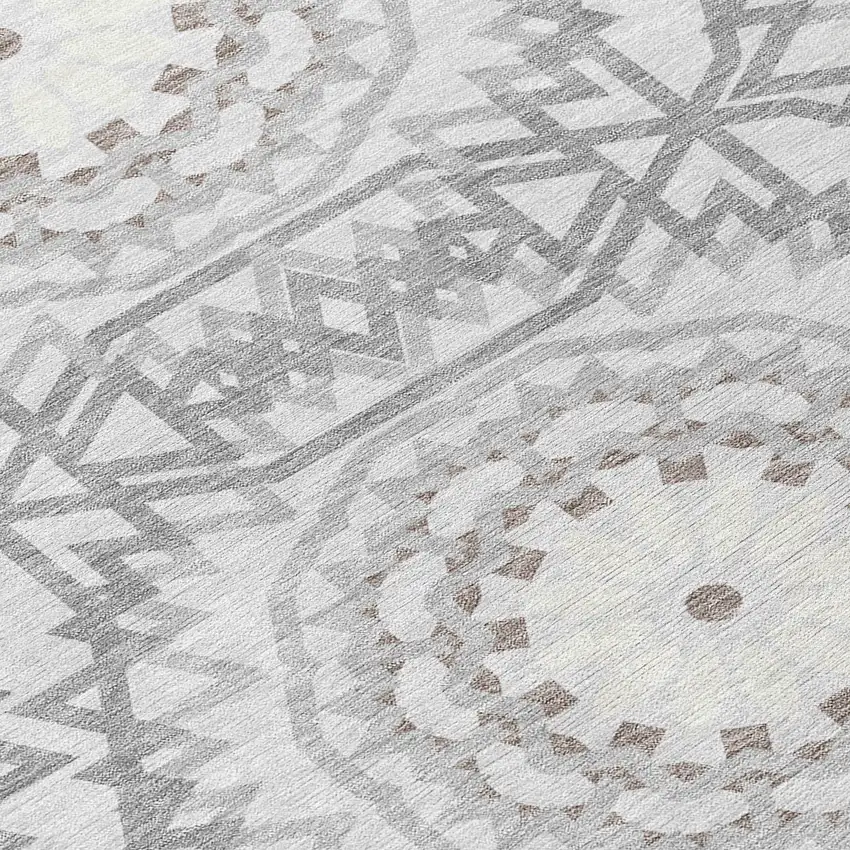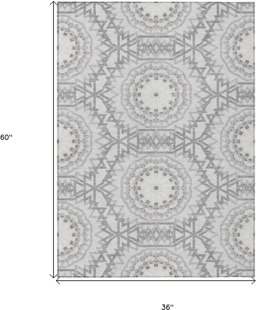 Silver Ivory And Gray Floral Medallion Washable Indoor Outdoor Area Rug