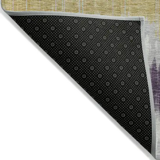 Silver Ivory And Purple Striped Washable Indoor Outdoor Area Rug