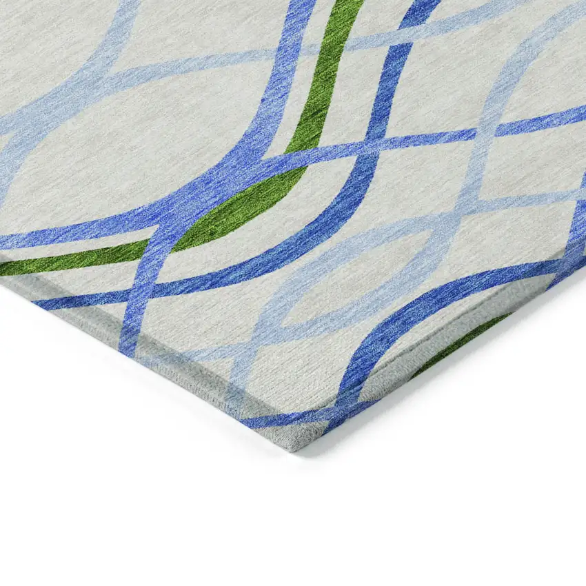 Sky Blue And Beige Abstract Washable Indoor Outdoor Area Rug