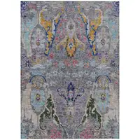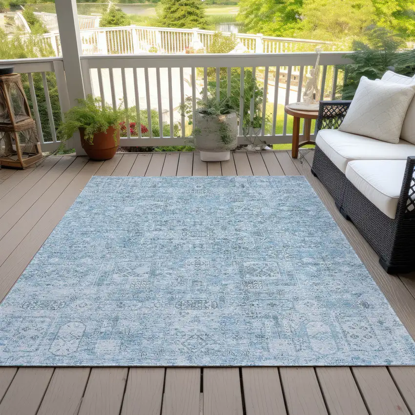Sky Blue And Denim Blue Floral Washable Indoor Outdoor Area Rug